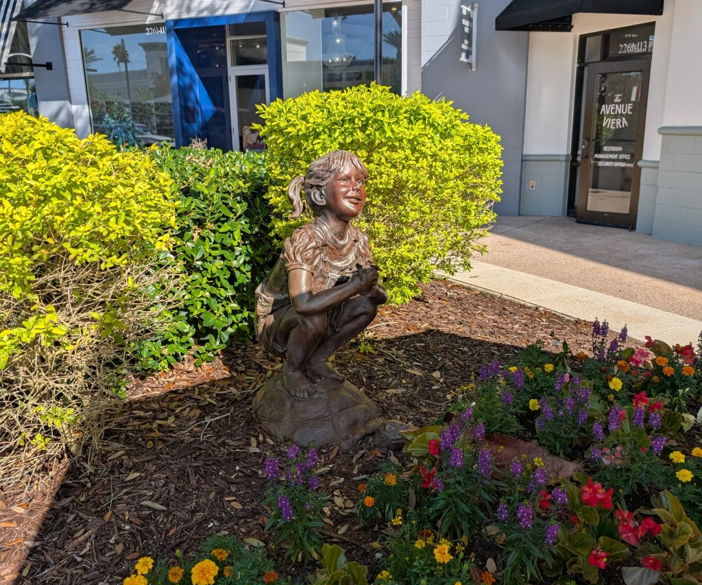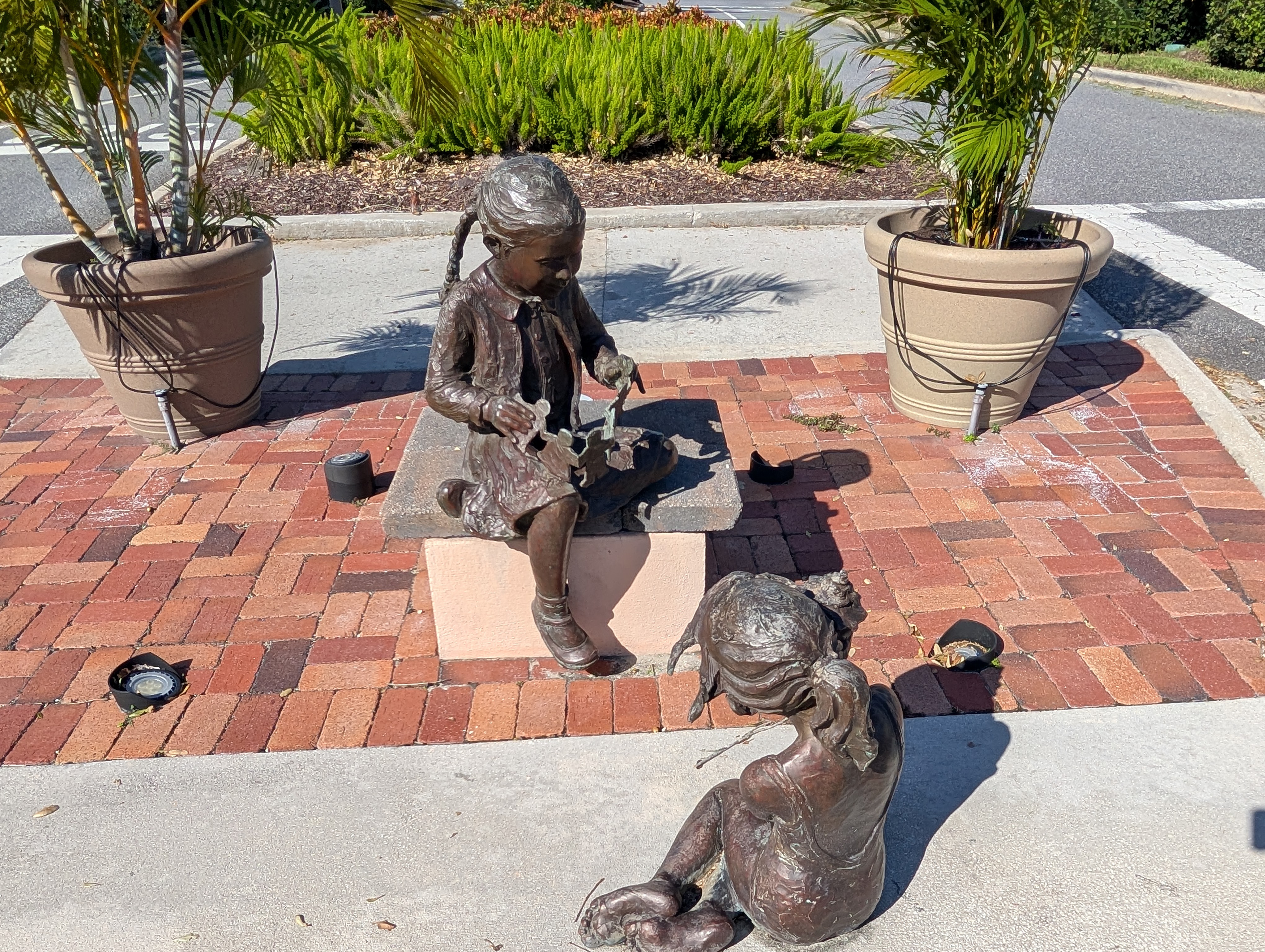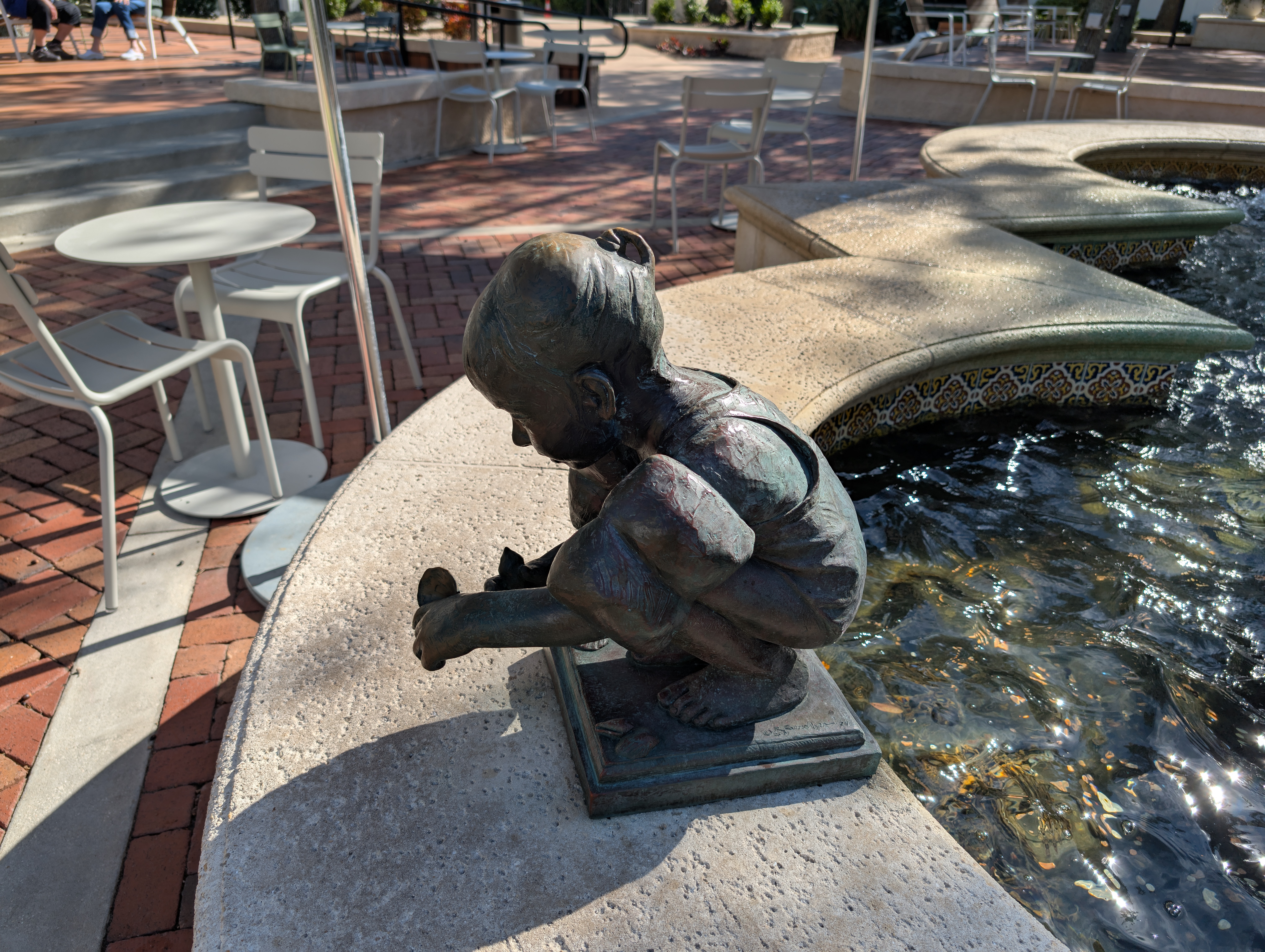 This shopping center has a series of sculptures of children at play. Some of them are exceedingly gendered in most of their depictions – the boys are playing with toy boats and planes, while the girls have paper dolls, a seashell, or flowers.