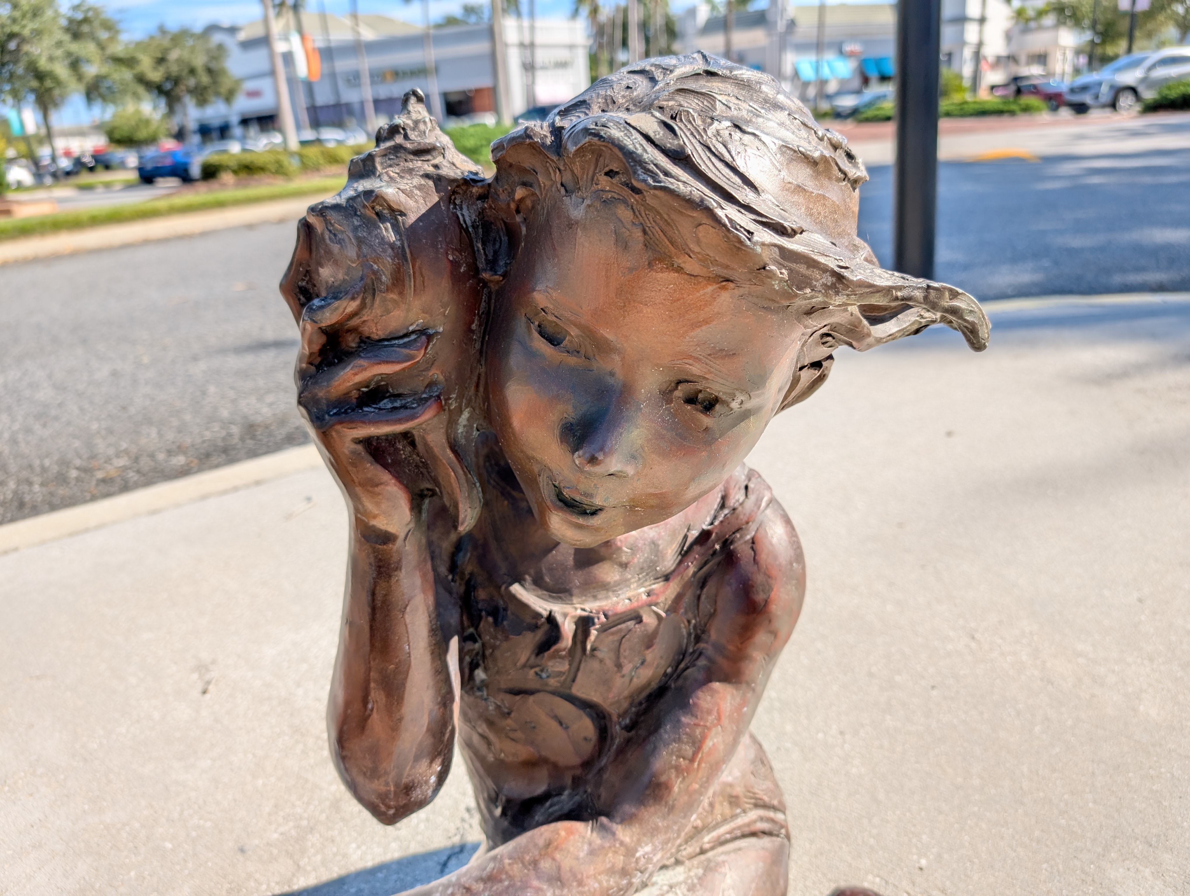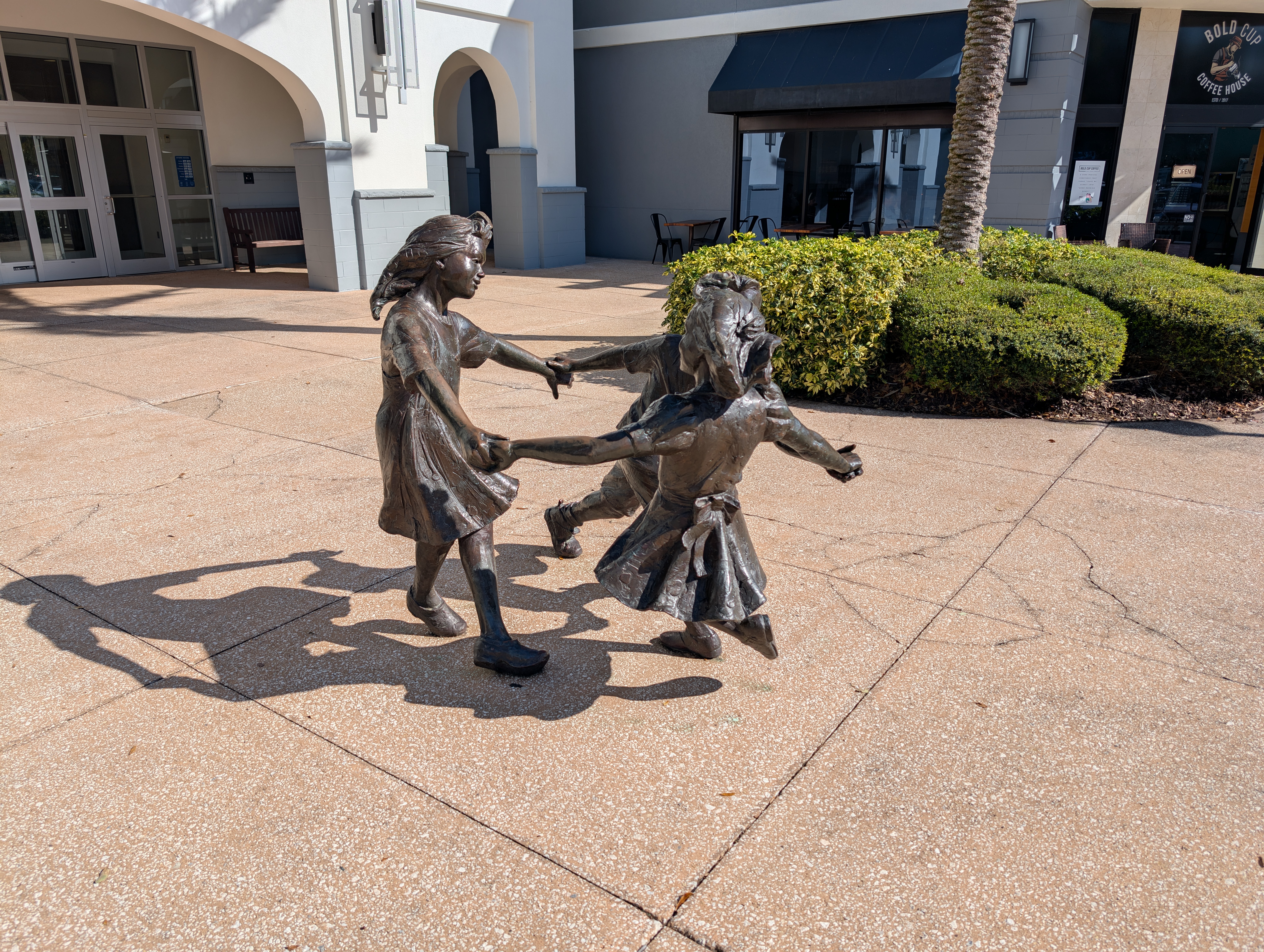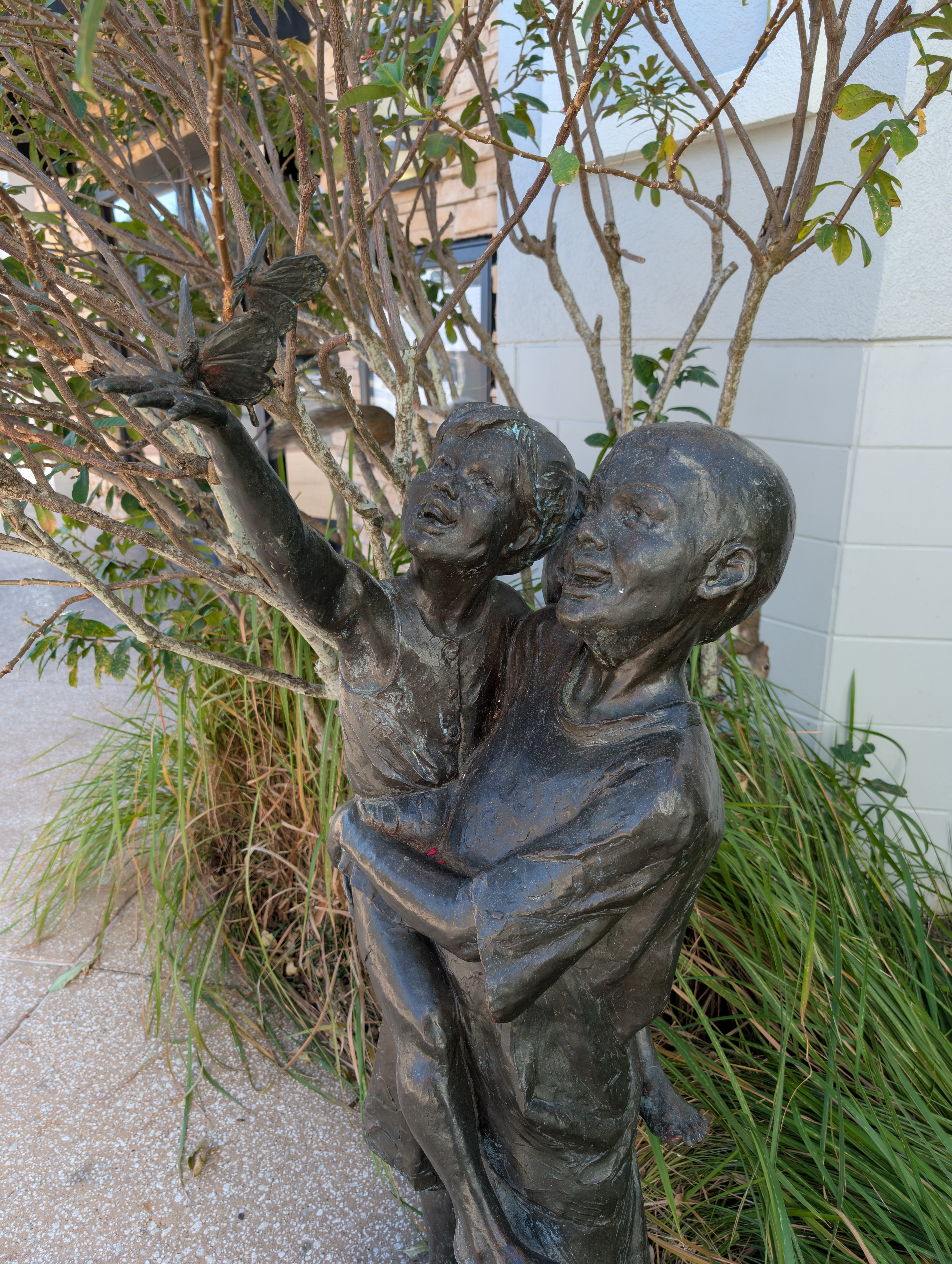 This shopping center has a series of sculptures of children at play. Some of them are exceedingly gendered in most of their depictions – the boys are playing with toy boats and planes, while the girls have paper dolls, a seashell, or flowers.